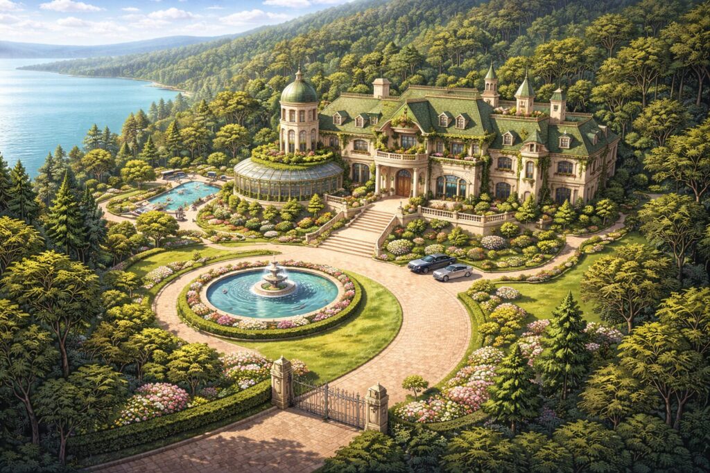 - 建物:森に囲まれた大きな屋敷